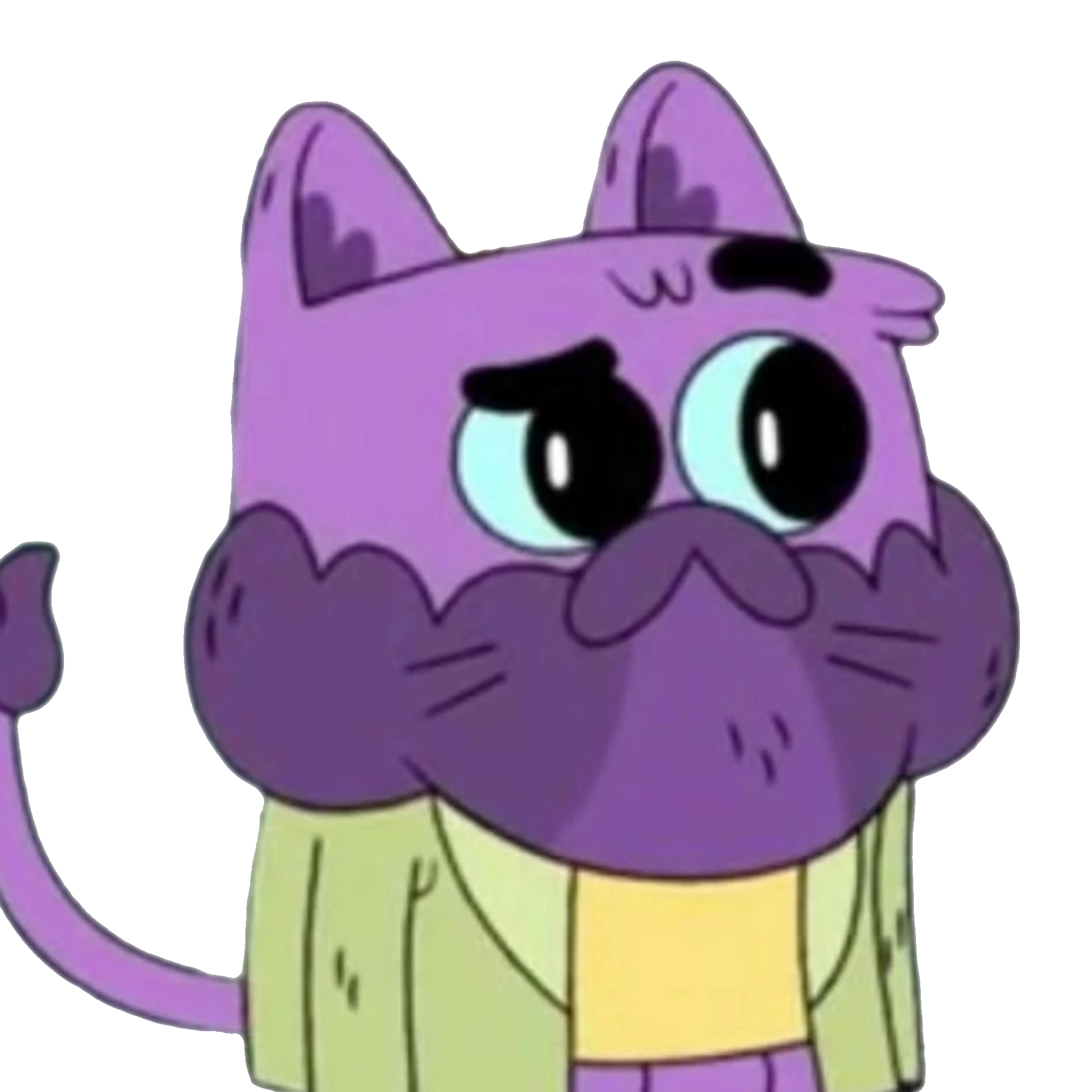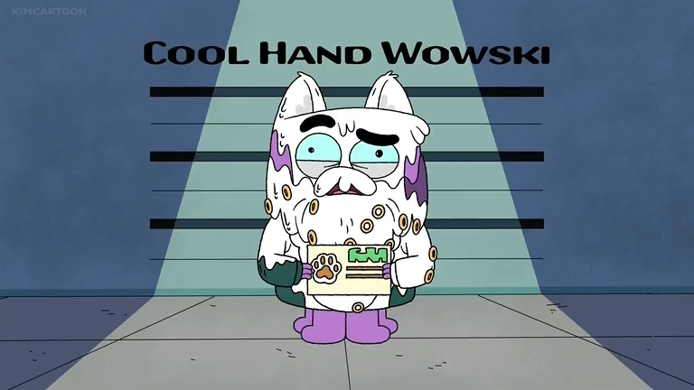CW is the lavender purple cat-like monster with matte-purple beard, matte-purple fluff in his ears, black whiskers, four legs and long (and it also seems to be able to stretch in Lil' Baby Ollie) tail with the same matte-purple tuft of hair at the end of it. He has light turquoise eyes and wide round pupils.