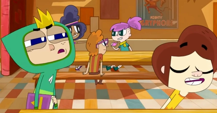 Cleopatra Badette (Cleo for friends) is the deuteragonist of Ollie's Pack. Along with Bernie, she helps Ollie in his Chosen One duties. AppearanceCleo is a young tomboyish teen girl with brownish skin. She has frizzy purple hair with shaved sides, tied in a high ponytail using a yellow hair elastic. She has a white shirt with a pink stripe in the center, a blue denim jacket with gray hood and sleeve ends, cold-gray jeans, pink socks and yellow sneakers with white parts. It is unknown about her eye color. Fans think it could be brown, purple or blue. EtymologyCleo says her name is short for Cleopatra in Trio's a Crowd. FamilyTwo of her brothers have been named: Duncan Badette is appears to be her eldest and Carl Badette appears to be her youngest. Four others (younger than Duncan but older than Cleo presumably) are shown as being past class presidents. This means she has a total of at least six brothers: there are a total of at least seven children. Inspiration 2 girls who may have inspired Cleo There is a scene in the 2019 short Monster Pack in the school cafeteria where an redheaded boy is sitting behind them. The boy has a red/yellow striped shirt. He is looking across the table at a girl with purple hair like Cleo, also in a ponytail like Cleo, also with shaved sides like Cleo. Behind her is a poster for "Mighty Gryphons", next to the "Homecoming Dance" banner. It seems probably that Cleo was based on her, although she has a lighter skin tone than Cleo ended up having. Her hair is a much lighter shade of purple in the pilot too. Also sitting with the redheaded boy is a darker-skinned girl with bluish hair so the characters may have been merged. Design and Development Pedro Eboli’s drawing In concept, it is almost no different from the current one, but with a slightly different hairstyle and clothes. PersonalityOfficial description"She is a brave and adventurous comic relief." — TV guide says. Description according to the epsCleo is also loyal and responsible. She is snarky, sarcastic and loves to joke about topics that can greatly offend someone. Sometimes she may seem too cruel (if she is in a very good mood), but in fact, she is kind and supportive girl, especially to her friends. She is also persistent and it’s better not to make her angry. RelationshipsShe is close friends with Ollie and Bernie. She presumably likes Ollie more than a friend, since from many episodes like Yard Sale Fail and Separation Anxiety, there can be seen that their bond is very strong and long. In mentioned episode, Separation Anxiety, she even said that she likes Ollie. As revealed in Hollie Monitor, Beard Boy is in love with her, but Cleo isn’t interested in him.